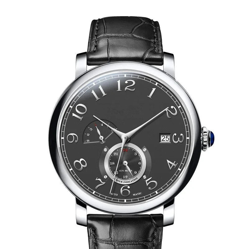 Wearing this men’s wristwatch elevates your fashionable look. Its waterproof feature resists water effectively. Equipped with an auto date feature, it’s practical and stylish. What sets this luxury watch apart is its automatic self-wind movement. The durable stainless steel case safeguards its movement. The genuine leather strap complements its style.