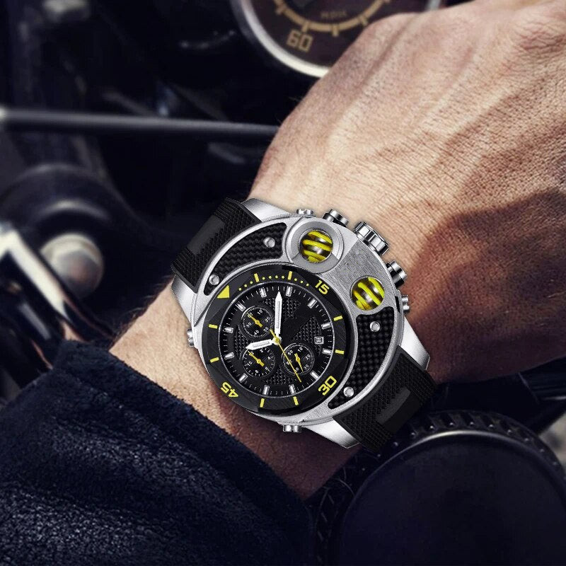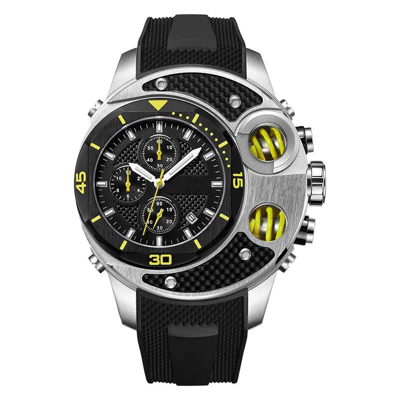 This men’s watch is a chic style destination, making it the perfect choice for unleashing your inner fashionista. This quartz timepiece boasts a waterproof design and is available at a fair price. With a stainless steel case and rubber strap, this watch features a captivating irregular design for added appeal. Pair it with your favorite outfit for an extra dose of style!